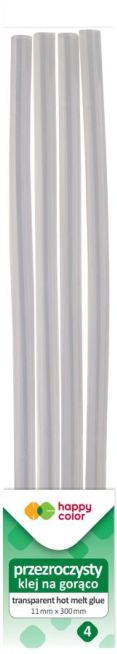 Klej do pistoletu na gorąco, krystalicznie przezroczysty, 11mm x 300mm, 4szt, blister, Happy Color