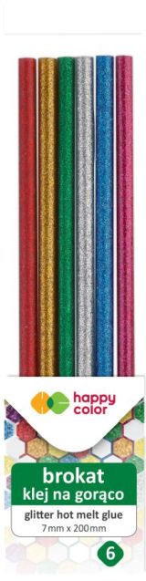 Gdd » Nowości » Klej do pistoletu na gorąco, brokatowy, 7mm x 200mm, 6szt, blister, Happy Color