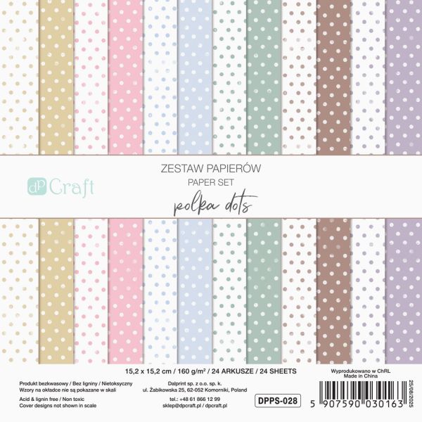 Dalprint » Nowości 2 » ZESTAW PAPIERÓW 15, 2 X 15, 2 CM, 24 KARTKI - POLKA DOTS [opakowanie=5szt]