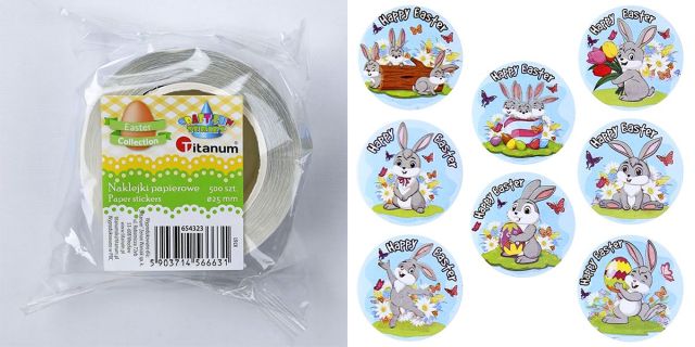 Titanum » Nowości Titanum » Naklejki papierowe na taśmie 8 wzorów Wielkanoc O25mm 500szt. TITWLK26