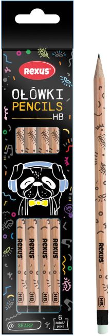 OŁÓWEK Z GUMKĄ 6szt. w kartoniku / REXUS TEENS