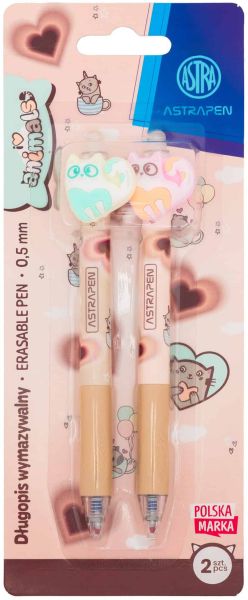 Astra » Nowości Astra » Długopis wymazywalny CLICK z gumowym uchwytem 0, 5 mm ASTRAPEN ANIMALS CHOCO - 2 szt. blister