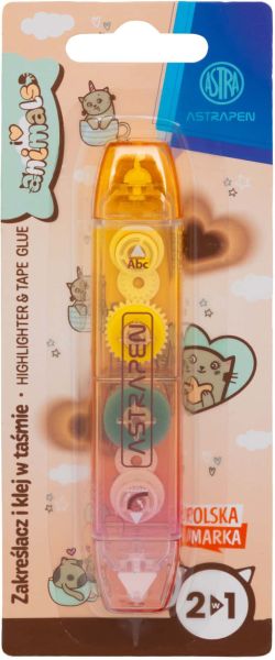 Zakreślacz i klej w taśmie 2w1 ASTRAPEN ANIMALS CHOCO - 1 szt. blister