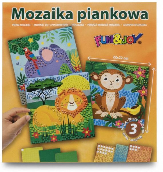 MOZAIKI PIANKOWE W KARTONIKU 3 WZORY: SŁOŃ Z PAPUGˇ, LEW, MAŁPA, WYMIARY: 22x22 cm FUNxJOY