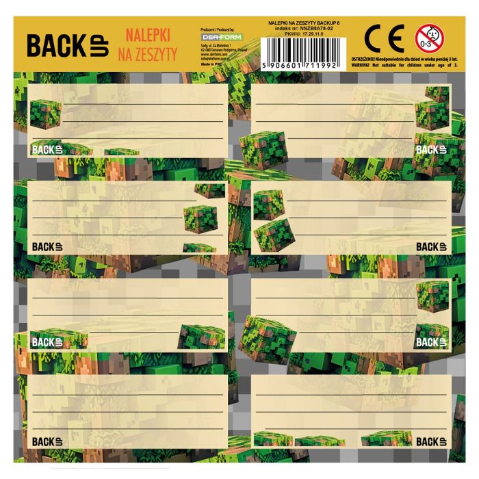 Derform » Backup » Artykuły papiernicze i piśmiennicze » NALEPKI NA ZESZYTY BACKUP 8 A 78 [opakowanie=25szt]