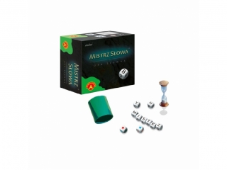 "Mistrz słowa" to pasjonująca gra słowna dla 2 -10 graczy. w trakcie swojej kolejki każdy z graczy stara sie jak najszybciej ułożyć słowo z literek znajdujących sie na wyrzuconych z kubka kostkach. Czas odmierzany jest zawsze przez klepsydrę. Po ułożeniu słowa określa się jego wartość punktową (wg podanej w instrukcji skali) i wpisuje do rubryki gracza w załączonym do gry notesie. Zwycięzcą zostaje ten kto