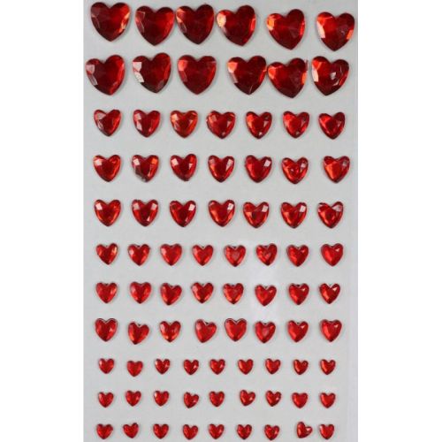 Kryształki samoprzylepne serca mix rozmiarów 9x10/8x8/6x7mm czerwone 88szt.