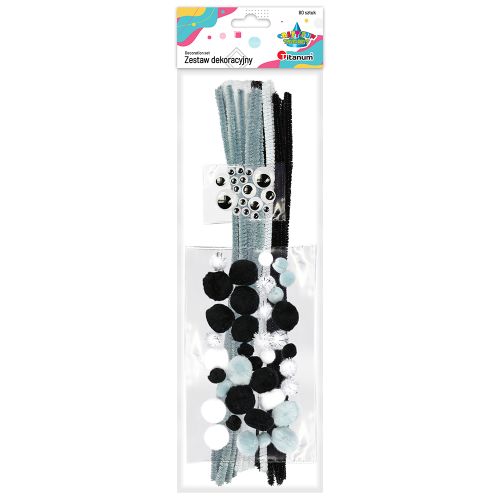 Titanum » Artykuły dekoracyjne całoroczne » Pompony » Zestaw: druciki, pompony, oczka 80szt. szary