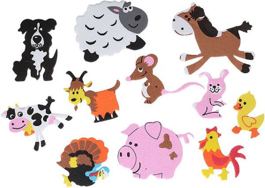 Titanum » Artykuły dekoracyjne całoroczne » Filce i Pianki: naklejki i dekoracje » Naklejki piankowe zwierzęta zagrodowe mix 11 wzorów 96szt.