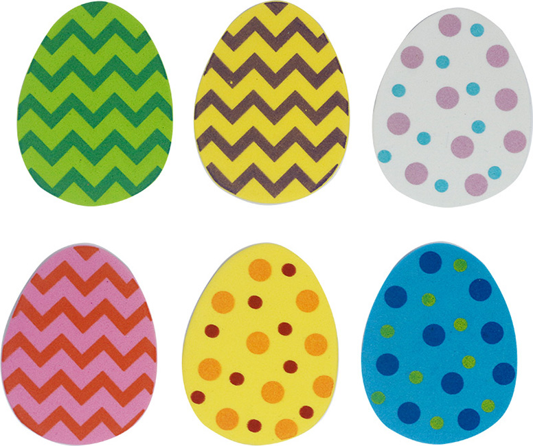 Titanum » Artykuły dekoracyjne całoroczne » Filce i Pianki: naklejki i dekoracje » Naklejki piankowe pisanki 43x57mm zielone, niebieskie, żółte, różowe, białe 24szt. TITWLK
