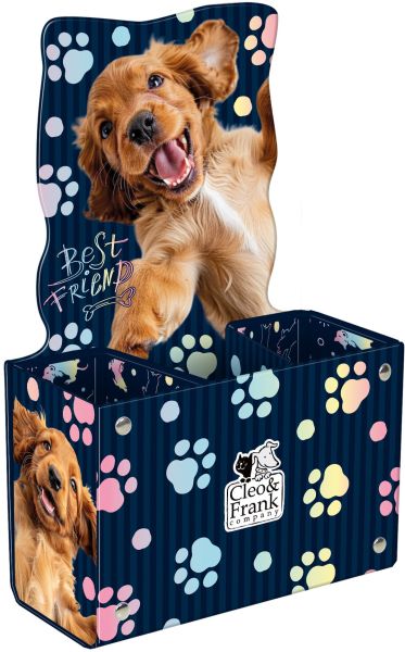 POJEMNIK NA PRZYBORY SZKOLNE CLEO I FRANK 44 (PIES)Sztywny, wykonany z grubej, laminowanej tektury pojemnik na przybory szkolne z ozdobnym nadrukiem. Posiada trzy przegrody, które pozwalają odpowiednio zorganizować przybory szkolne.