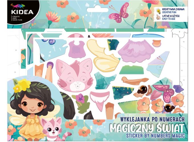 WYKLEJANKA PO NUMERACH MAGIC KIDEAStwórz piękne obrazy bez farb i pędzli. Wyklejanie po numerach. Obraz ma ponumerowane pola, które uzupełnia się odpowiednimi naklejkami z załączonych arkuszy. Każdy numer wskazuje, którą naklejkę gdzie należy przykleić, dzięki czemu zabawa jest prosta... |