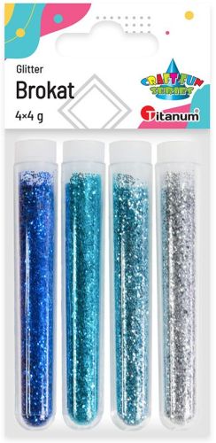 Brokat w fiolkach 4 kolory x4g kolory: srebrny, jasnobłękitny, turkusowy, chabrowy Brokat sypki. Zestaw 4 kolorów: srebrny, jasnoniebieski, niebieski i ciemnoniebieski w zamykanych fiolkach. Pojemność: 4 x 4 g. |