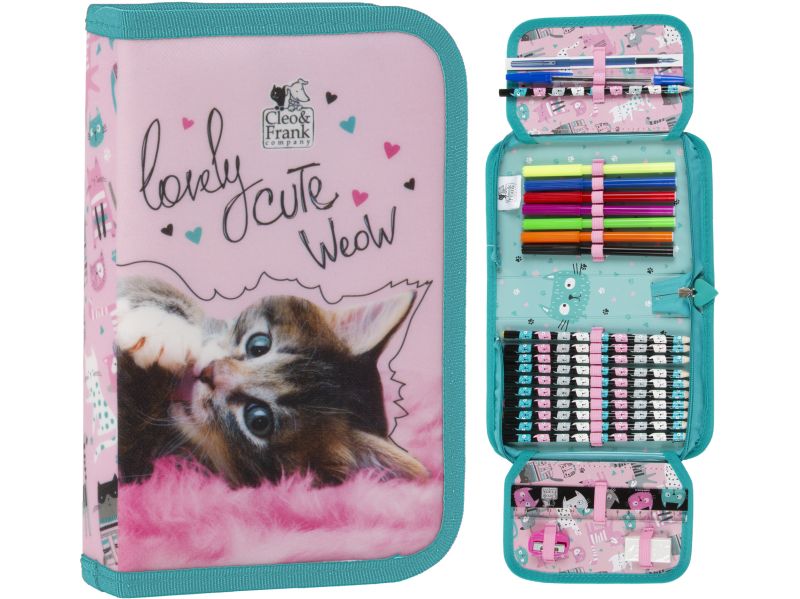 PIÓRNIK JEDNOKOMOROWY CLEO I FRANK 37 (KOT) Piórnik posiada jedną komorę zapinaną na zamek błyskawiczny oraz dwie wewnętrzne klapki. Suwak zakończony jest ozdobnym pullerem. Wnętrze piórnika posiada liczne zakładki na akcesoria oraz miejsce na plan lekcji i tabliczkę mnożenia.20 x 13 x 4 cm165... |