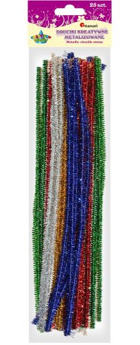 Druciki metalizowane 0, 6x30cm 5 kolorów 25szt. (kolory: czerwony, zielony, srebrny, złoty, fioletowy)Zestaw miękkich, włochatych i niezwykle elastycznych drucików elastycnych. Idealne do wszelkich prac manualnych, tworzenia niebanalnych odzdów i oryginalnych dekoracji np. świątecznych. Wspaniale komponują się z piórkami dekoracyjnymi, pomponami... |