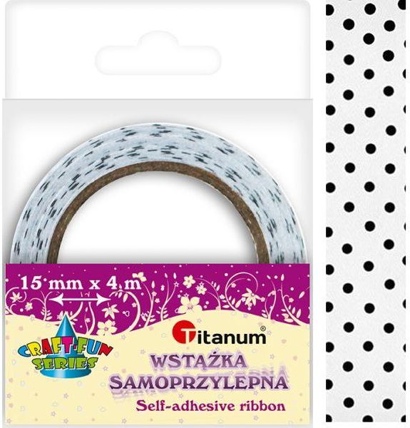 FABRIC TAPE 1, 5X4M ECRY/CZARNEFABRIC Tape, 4m1.5cm różowa w białe kropki |