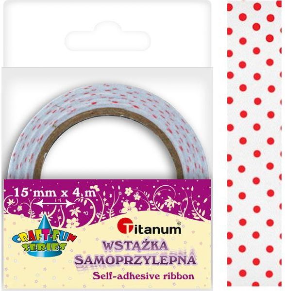 FABRIC TAPE 1, 5X4M BIAŁ/RÓŻFABRIC Tape, 4m1.5cm biała w różowe kropki |