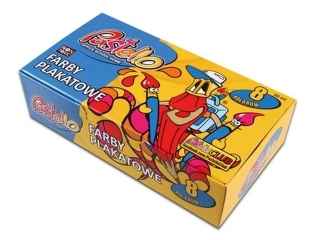 Farby wodne Fiorello 8 kol. PB2108 (sz)– zmywalne – jaskrawe kolory – w zestawie pędzelek z nylonowym włosiem – zestaw 8 kolorów x 2 g – zgodne z wymaganiami UE |