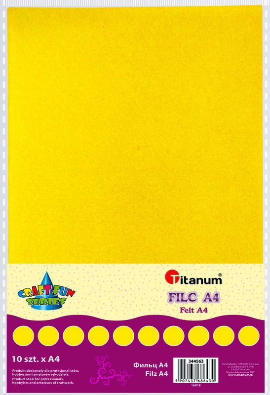 Filc A4 2mm 200g 10szt. żółty Miękkie arkusze kolorowego filcu w formacie A4.