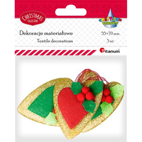 Kształt: serca z ostrokrzewem z filcu i pomponów.