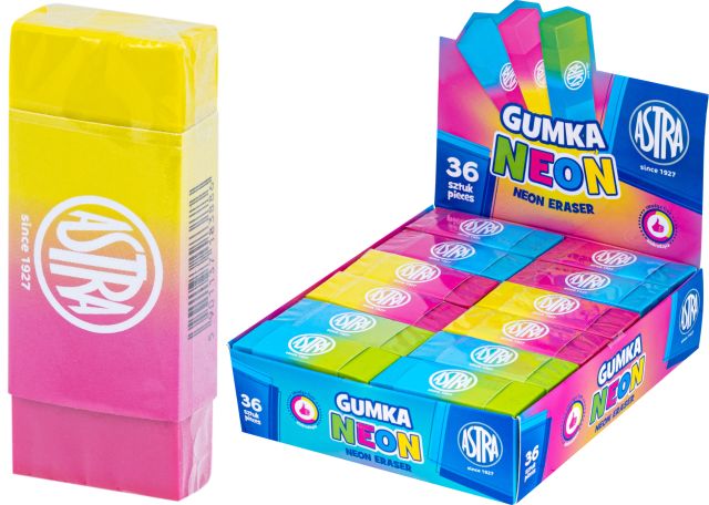 Gumka dwukolorowa neonowa ASTRA - display 36 szt. [opakowanie=36szt] |