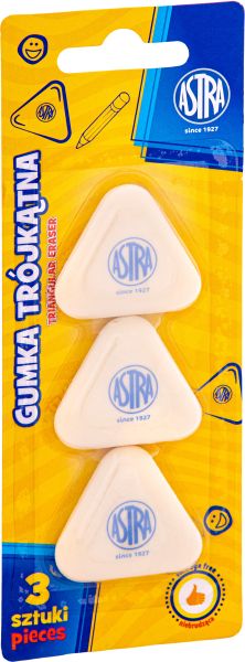 Gumka trójkątna ASTRA - 3 szt. blister [opakowanie=12szt]• miękka gumka do ścierania ołówka • nie narusza struktury papieru • trójkątny kształt |