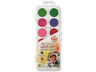 KIN FARBY AKWARELOWE 172004 24 KOL. 30MM PROSTOKĄTNE, czarne opakowanie- Farby akwarelowe szkolne - Zestaw zawiera 24 kolory spakowane w plastikowe pudełko - Farby są bezpieczne dla dzieci, wyprodukowane zgodnie z Europejskimi Normami Bezpieczeństwa na terenie Unii Europejskiej |