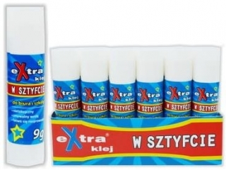 KLEJ W SZTYFCIE 15 G (ZIELONY LUB EXTRA KLEJ) [opakowanie=24szt]- nietoksyczny - zmywalny wodą - łatwo się rozprowadza - idelany do biura i szkoły |