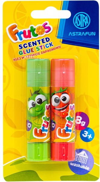 Klej w sztyfcie zapachowy PVP Frutos ASTRAFUN 8 g - 2 szt. blister [opakowanie=12szt]Klej zapachowy Frutos ASTRAFUN 2x8g 🍓🍉🍊 – Kolorowa Kreatywność z Nutą Owoców!