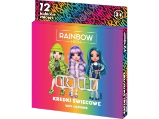 Kredki świecowe okągłe RAINBOW HIGH - 12 kolorów - 8/90 mm [opakowanie=24szt]• żywe, intensywne odcienie • niepodatne na złamania • nie wymagają temperowania • nie brudzą dłoni • zawierają wysokiej jakości pigmenty i wosk |