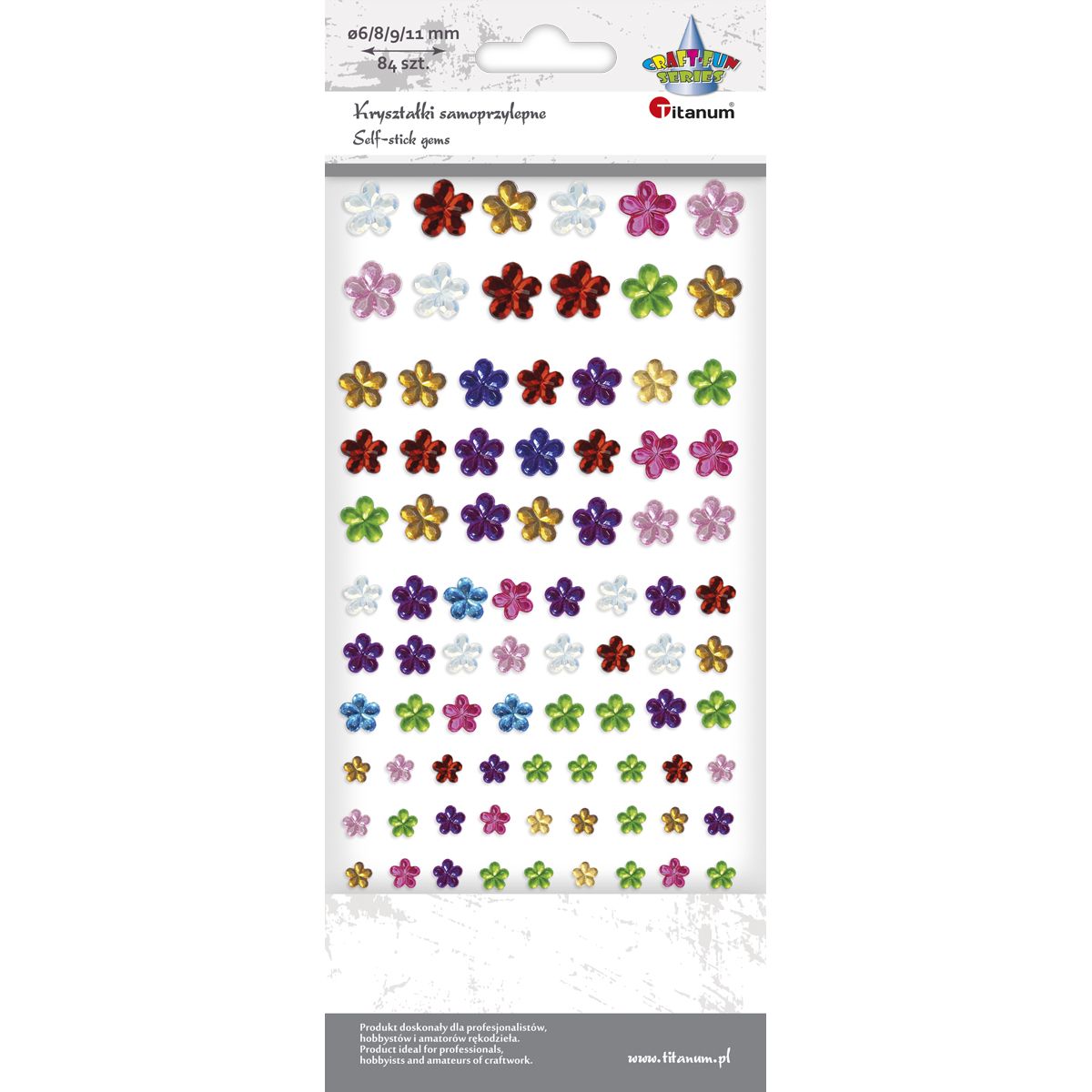 Kryształki samoprzylepne kwiaty mix kolorów 11/9/8/6mm 84szt.Kryształki samoprzylepne. Wzór: kwiaty, mix kolorów i rozmiarów. 84 sztuki. |