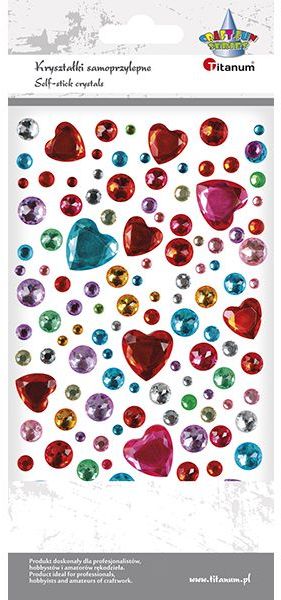 Kryształki samoprzylepne mix serca, okrągłe mix kolorów 109szt.kryształki samoprzylepne, |