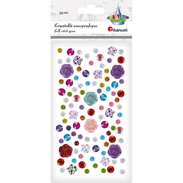 Kryształki samoprzylepne mix kwiatki, okrągłe, kwadraty mix kolorów 141szt. |