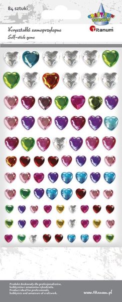 Kryształki samoprzylepne. wzór: serca, mix kolorów i rozmiarów. 84 sztuki.