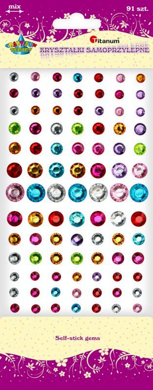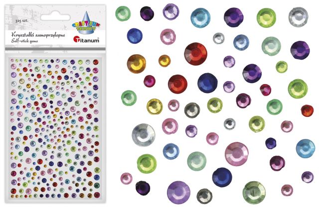 Kryształki samoprzylepne, okrągłe, mix kolorów, mix rozmiarów. 103 szt.