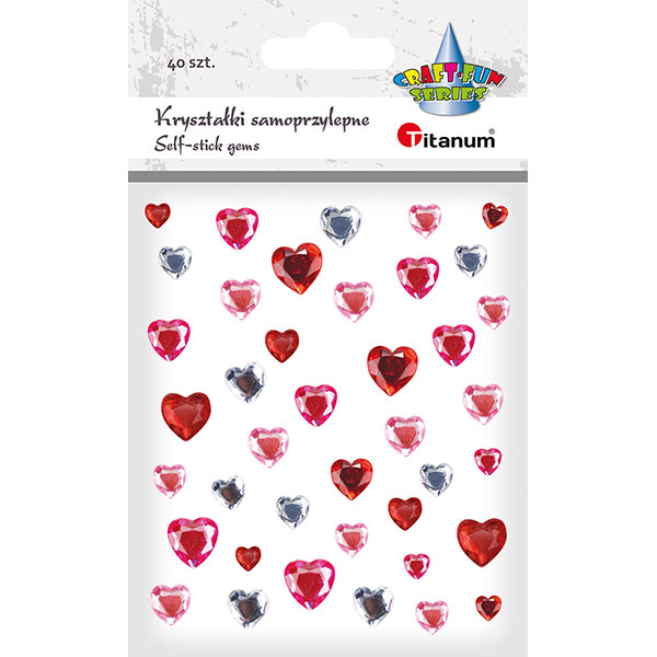 Kryształki Samoprzylepne TITANUM – Wzór Serca, Czerwone, Różowe i Srebrne, 40 szt.