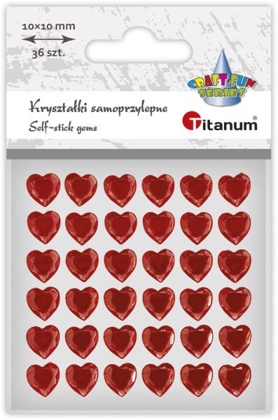 Zestaw samoprzylepnych kryształków TITANUM w kształcie serc to elegancki dodatek do projektów DIY i dekoracyjnych. W intensywnych kolorach czerwieni, różu...