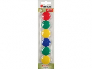 Magnesy kolorowe Fandy 25 mm, 20 szt. 171712 (sz)– przydatne do przyczepiania kartek do lodówki, tablic itp. – 25 mm, 20 szt. – 4 kol.: żółty, granatowy, czerwony, zielony |