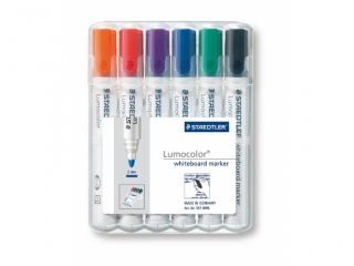 Marker Lumocolor do białych tablic whiteboard, okrągły, 6 kol. (2, 3, 4, 5, 6, 9) w etui box, Staedtler• Marker suchościeralny do białych tablic • Ścieralny na sucho z białych tablic i gładkich powierzchni tj. szkło i porcelana – nie pozostawia smug • Formuła DRY SAFE: pisak może pozostać otwarty przez kilka dni i nie wyschnie (Test... |