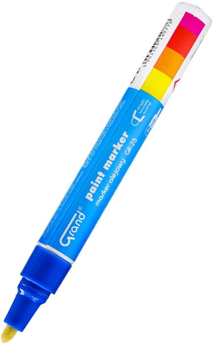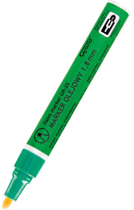 Marker olejowy z aluminiową obudową i akrylową końcówką o grubości 2,5 mm. Produkt idealny do wykorzystania w przemyśle. Nie zawiera ksylenu. |
