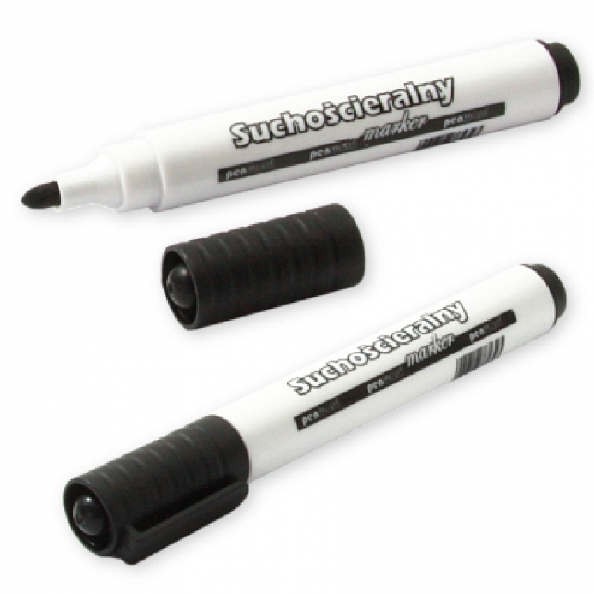 Marker suchościeralny CZARNY 12szt. [opakowanie=12szt] Marker suchościeralny do białej tablicy w kolorze czarnym. Szybkoschnący i łatwościeralny. Nie zawiera toluenu ani ksylenu. Nie pozostawia smug na tablicy. |