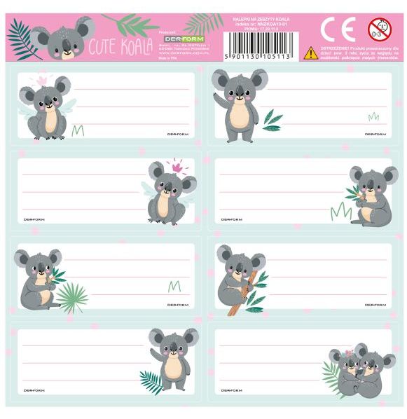 NALEPKI NA ZESZYTY KOALA 10 [opakowanie=25szt] NALEPKI NA ZESZYTY KOALA 10 [opakowanie=25szt]