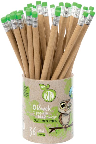 W pełni ekologiczny ołówek ECO Astra wyprodukowany z papieru kraftowego. Posiada również gumkę, umożliwiającą wymazywanie. W zestawie znajdują się dwa ołówki. Produkty ECO Astra powstały z potrzeby dbania o środowisko naturalne. Dołącz do naszej zielonej...