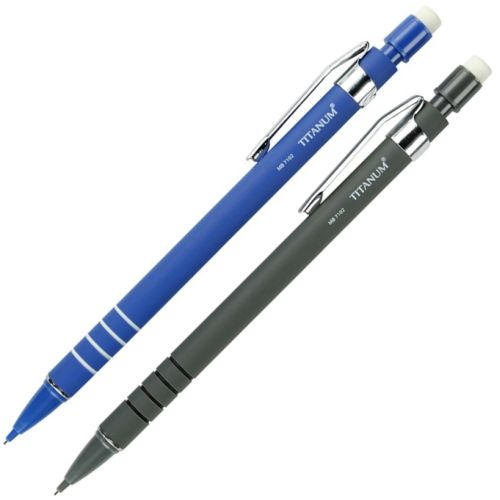 OŁÓWEK MECH.MB7102-00JB MIX/DR [opakowanie=24szt]- ołówek automatyczny - gumowana obudowa - wbudowana gumka do wymazywania - wymienny grafit o grubości: 0,5 mm - obudowa w kolorach: niebieskim, szarym |
