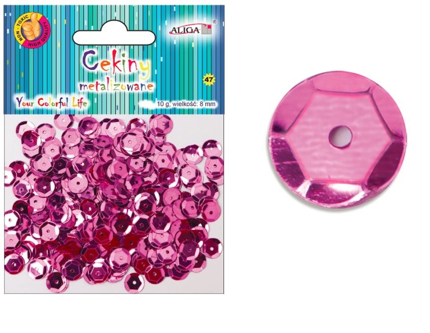 Cekiny okrągłe 7mm metaliczne różowe 14gSzeroki wachlarz kolorow: od delikatnych nut pastelowych przez żywe odcienie tęczowe i neonowe, aż po błyszczące barwy metaliczne i laserowe. Różnorodność wzorów i kształtów sprawiają, że cekiny idealnie nadają się do tworzenia wszelkiego rodzaju prac... |