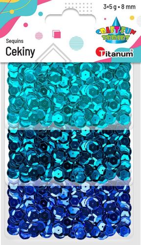 Cekiny okrągłe 7mm zestaw 8 kolorów po 2, 5g tonacja niebieska- cekiny w odcieniach niebieskich - w zestawie 8 woreczków po 2,5 g - średnica cekinów: 7 mm |