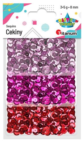 Cekiny okrągłe 8mm zestaw metaliczny 3 kolory x5g kolory: jasnoróżowy, fuksjowy, czerwony- cekiny okrągłe - zestaw 3 kolorów po 5 g - kolory metaliczne: jasnoróżowy, fuksjowy, czerwony - średnica cekinów: 8 mm |