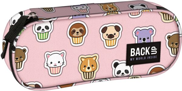 PIÓRNIK BACKUP 6 MODEL A 30 Urocze zwierzaki w postaci kolorowych muffinek - czy może być coś słodszego? Ich fioletowe, białe i brązowe barwy w połączeniu z pastelowym różem materiału i czarnymi dodatkami tworzą piórnik idealny. Urocze muffinko-koty, pieski, pandy i koale bawią... |