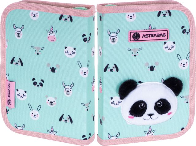 Piórnik pojedynczy dwuklapkowy bez wyposażenia ASTRABAG TEDDY PANDA, AC1 [opakowanie=12szt] • 1 komora, organizer na przybory