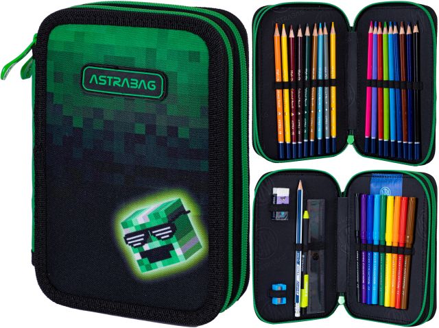 Piórnik podwójny z wyposażeniem ASTRABAG PIXEL HERO, AC21 • 2 komory
